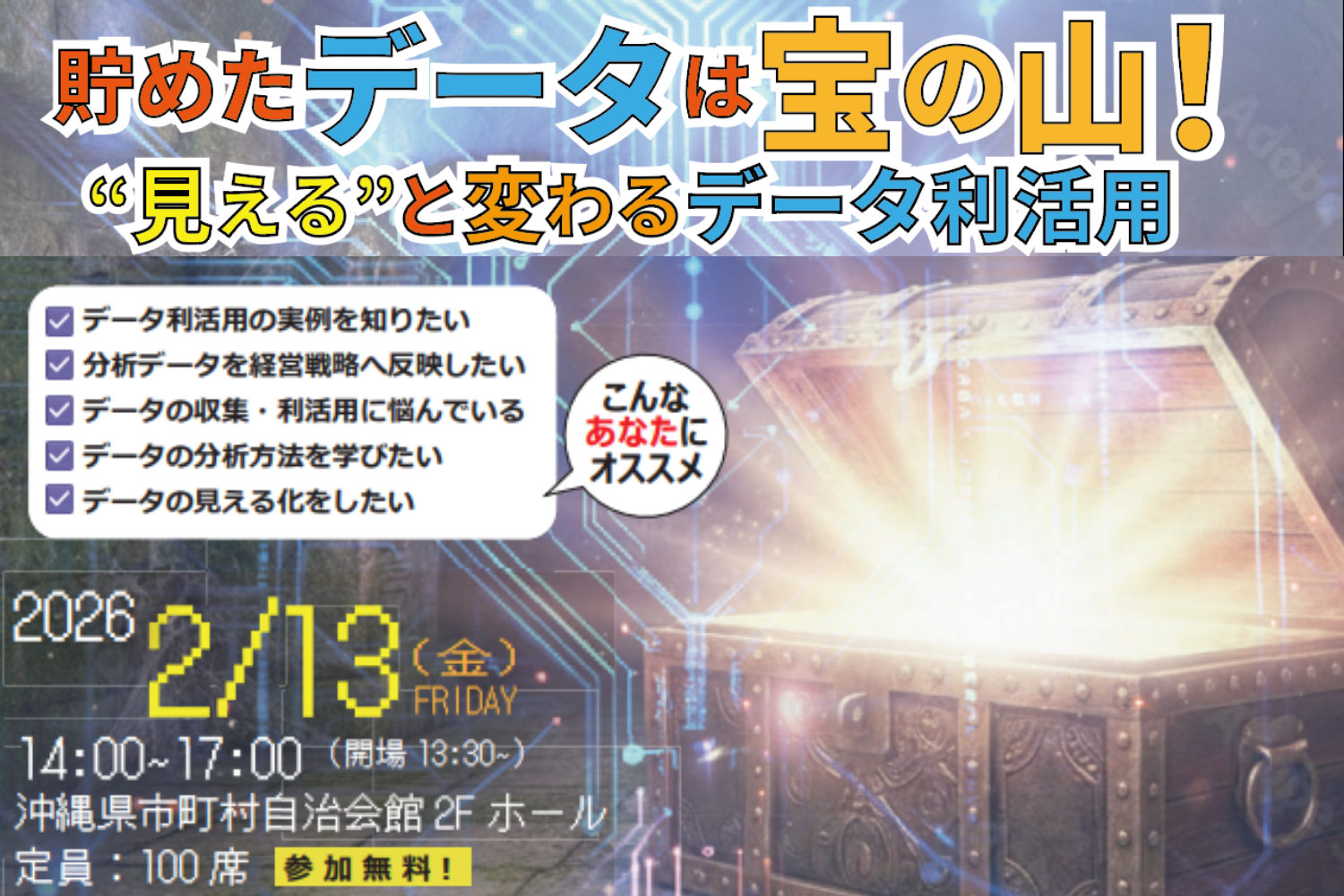 【2/13開催】沖縄県主催データドリブンセミナー 「貯めたデータは宝の山!“見える”と変わるデータ利活用」