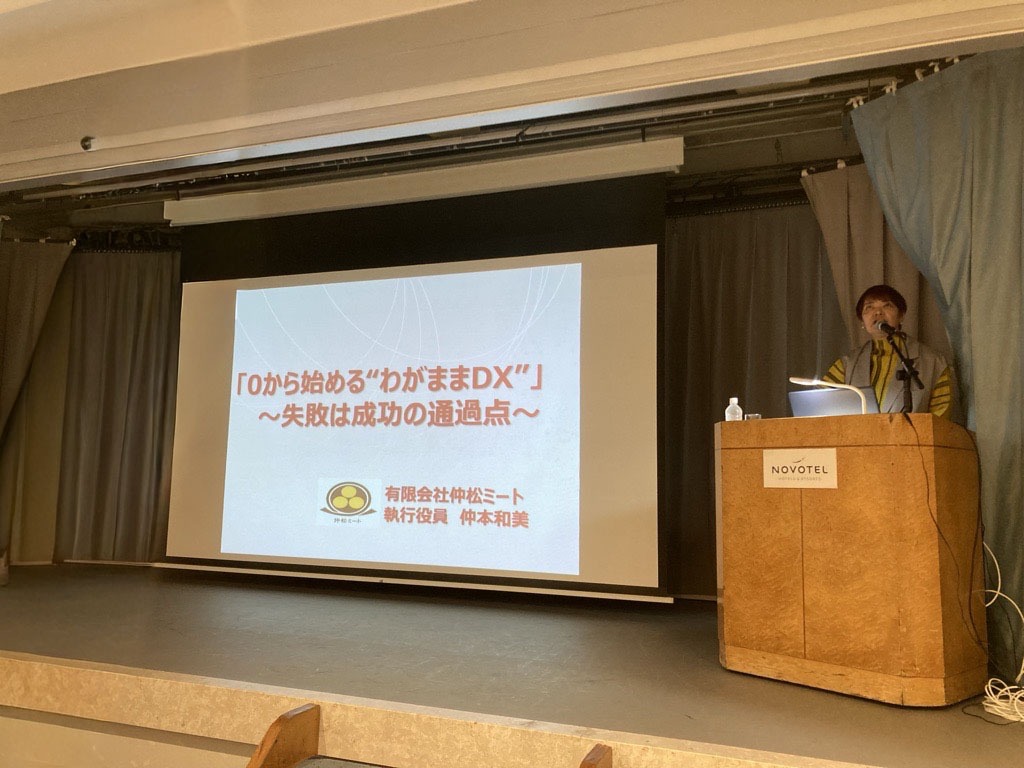 第二部では、有限会社仲松ミート執行役員 仲本和美 氏に、2020年から本格的に取り組んだDXの舞台裏を紹介していただきました。